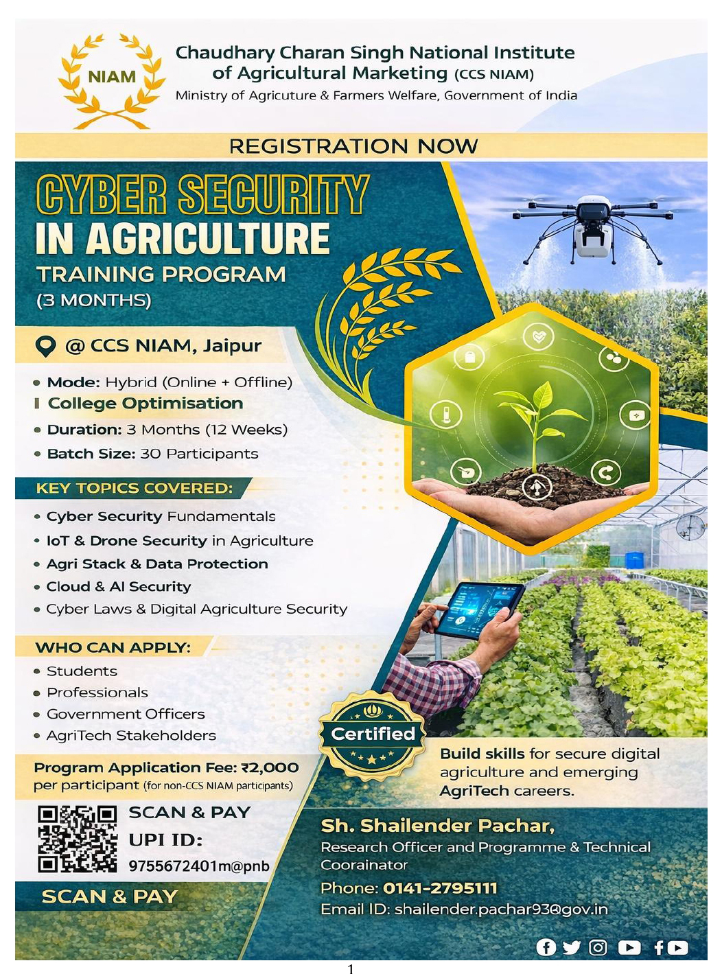 Apply for Online Program on Cyber Security in Agriculture